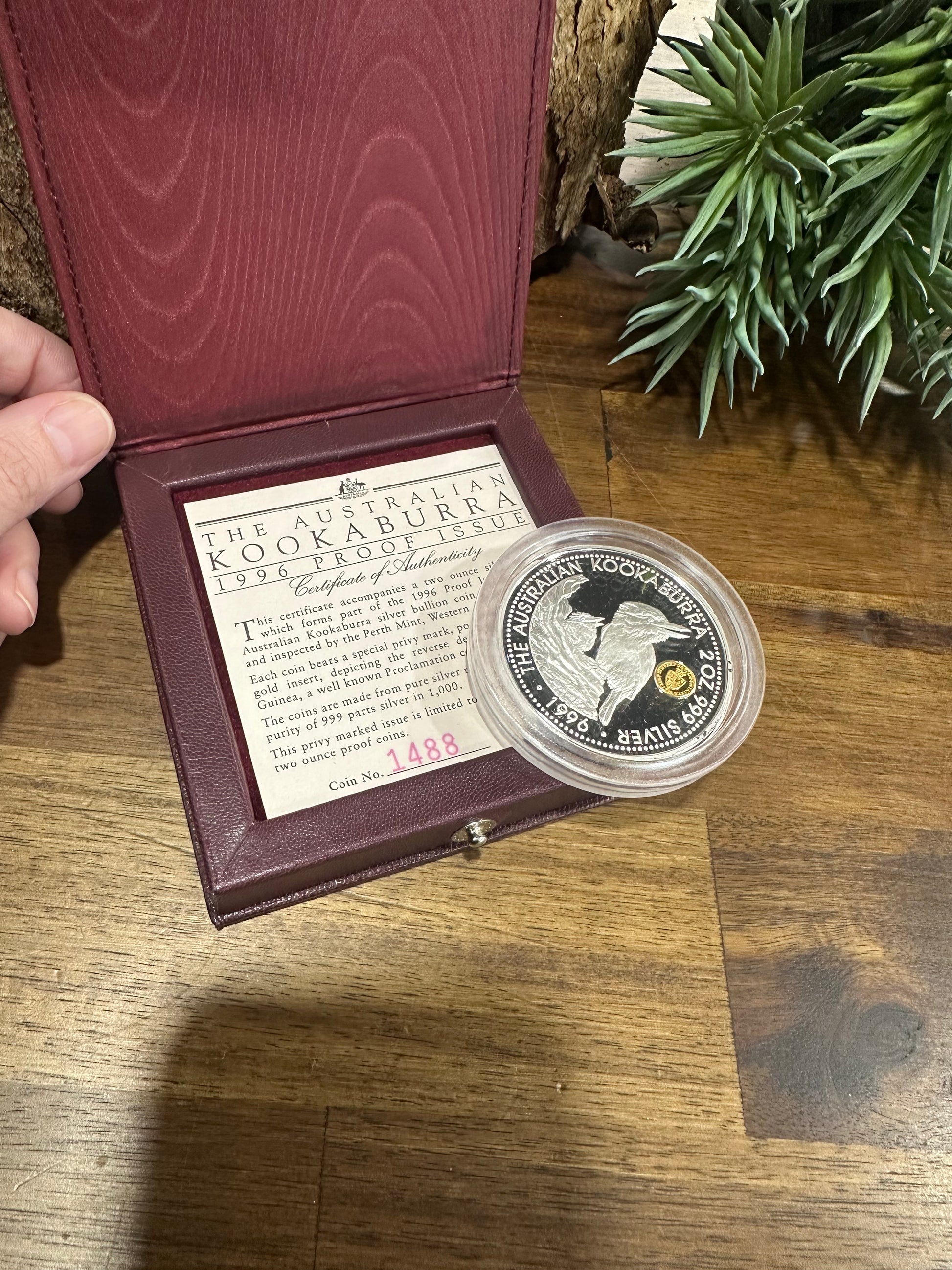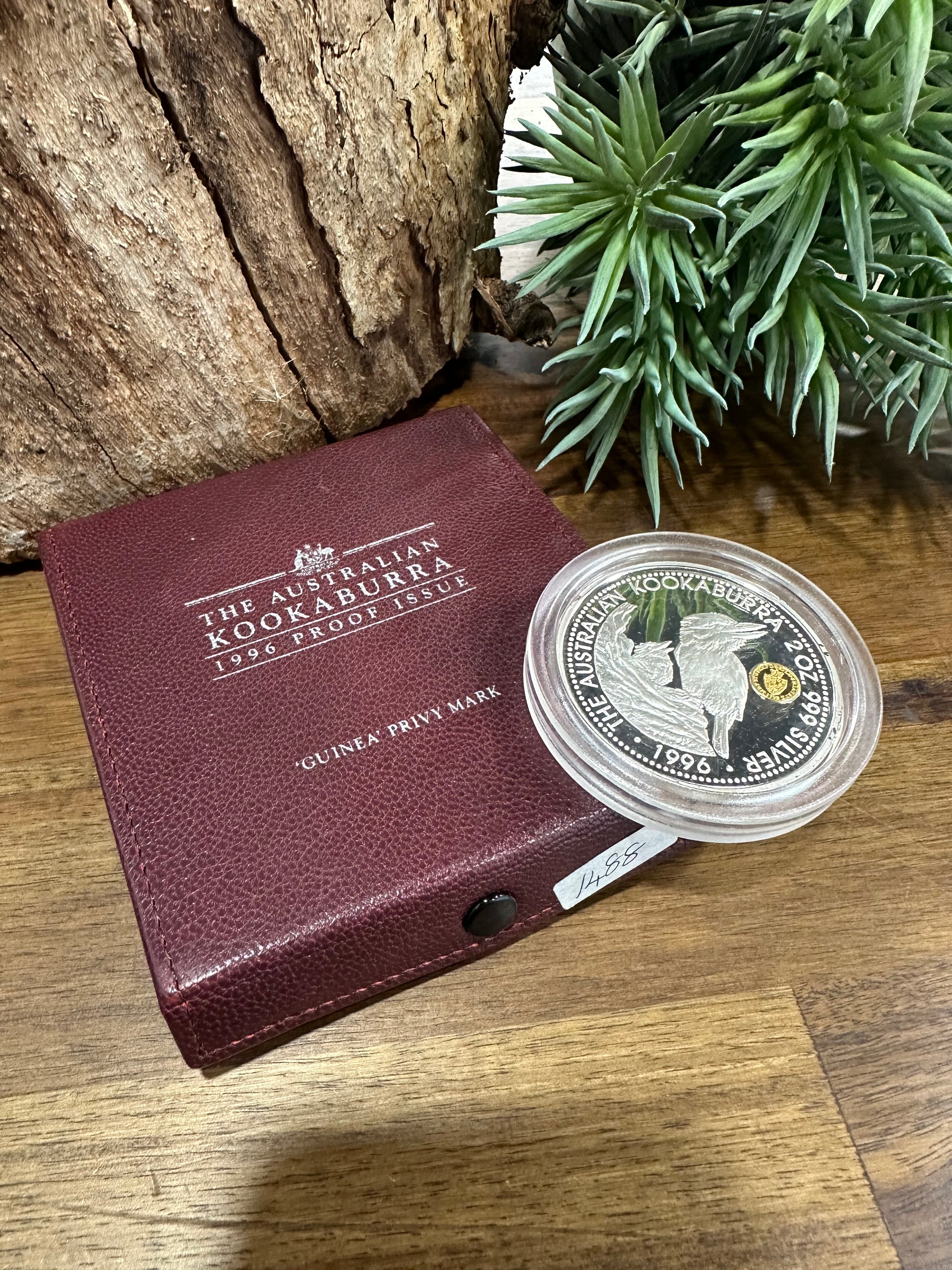 The 1996 $2 2oz Silver Proof Kookaburra featuring the Spade Guinea Privy Mark, crafted in a limited edition of only 1,500 coins.