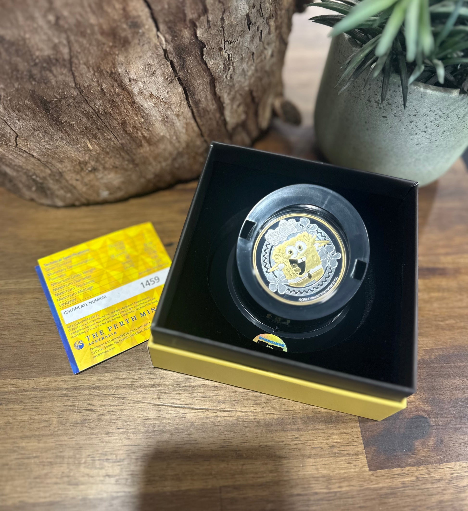 $2 SpongeBob SquarePants 2oz Silver Proof Gilded Pineapple Coin • 2024