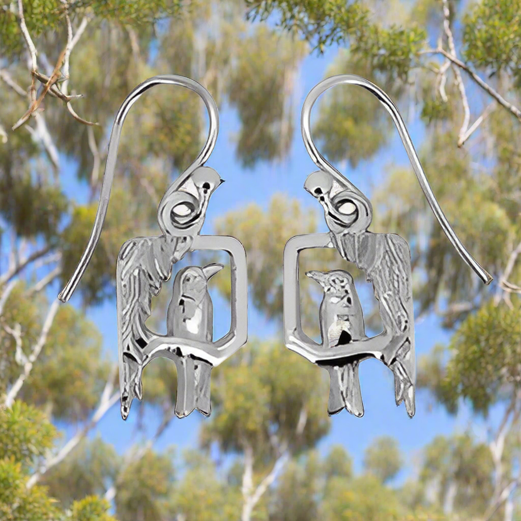 The Black-faced Cuckoo-shrike Earrings are carved true to life and sit eternally on their branches, ready to fly off and explore their surrounds.