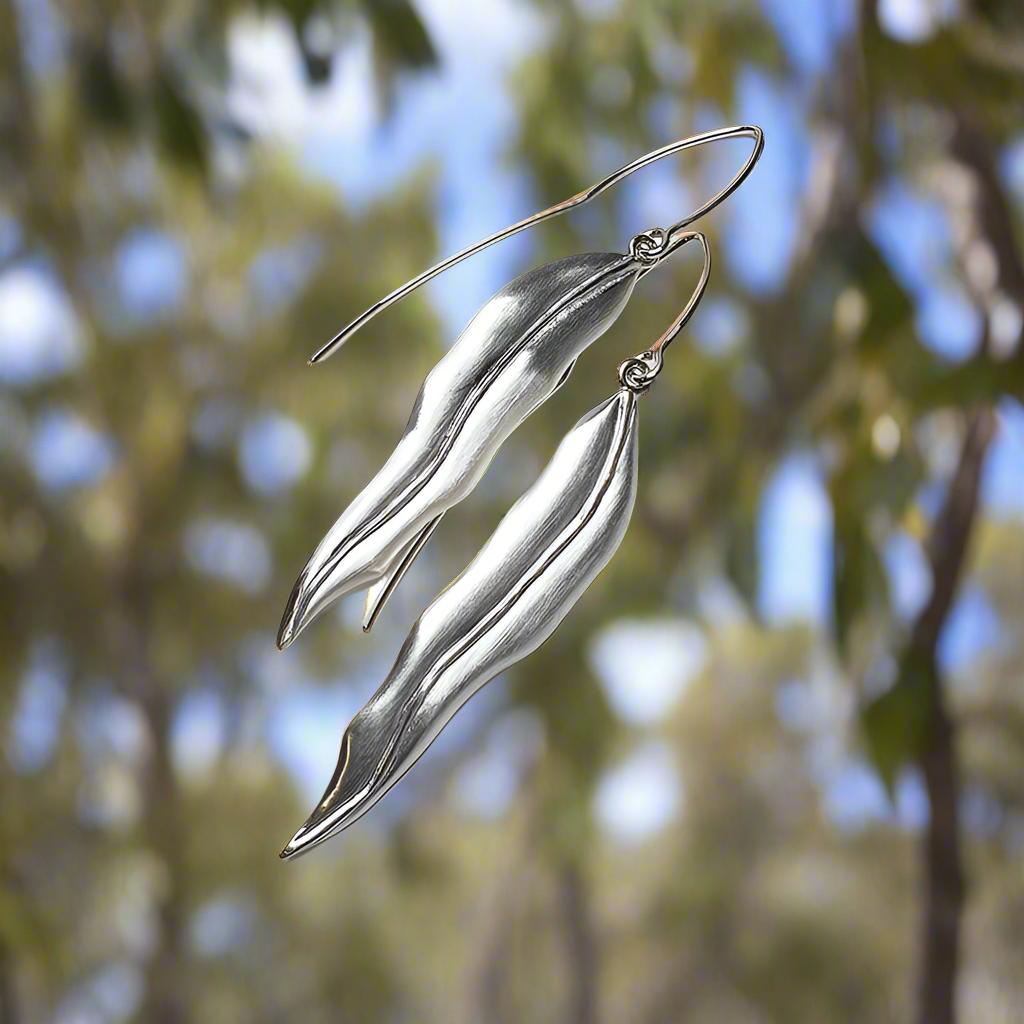 Perfect for those looking for a longer style leaf earring, the large Fallen Leaves Earrings fall just past the jawline. Suspended on a sterling silver hook, these earrings will move with you.