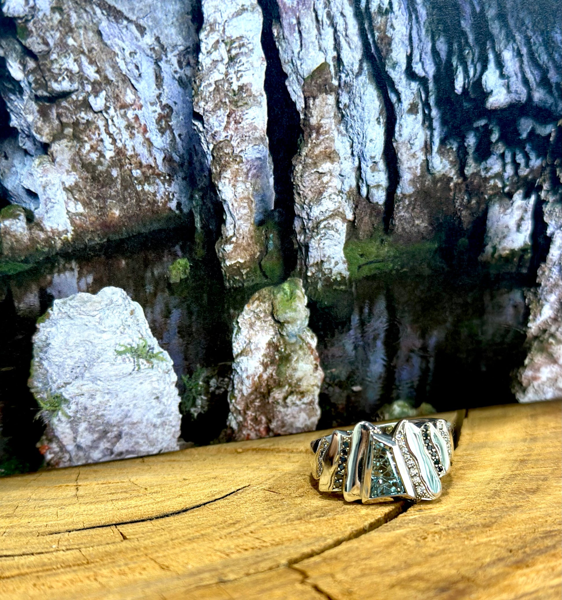 This unique and amazing Yarrangobilly Underworld II ring is handcrafted in 9ct white gold.